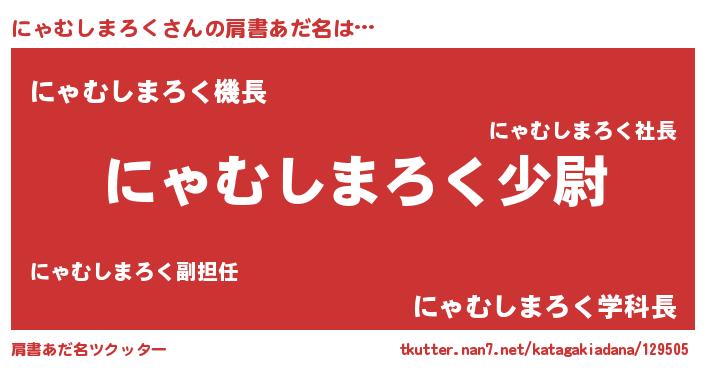 | 男性向けラノベタイトル風あだ名 | 『にゃむしまろく~年齢イコール彼女いない歴の魔法使い~』 |