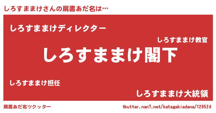 | 男性向けラノベタイトル風あだ名 | 『Re:しろすままけから始める異世界生活』 |