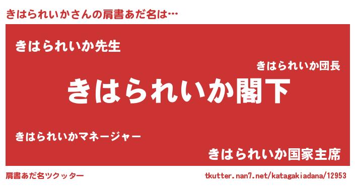 | 意味不明あだ名 | 『自称きはられいか』 |