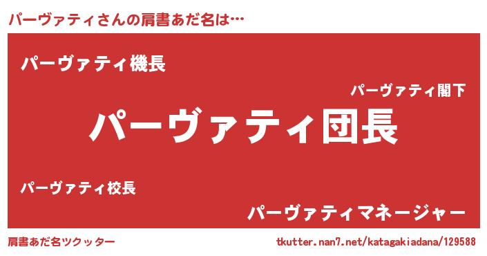 | ヘコむあだ名 | 『パーお』『パーヴァティ(遠い目)』 |
