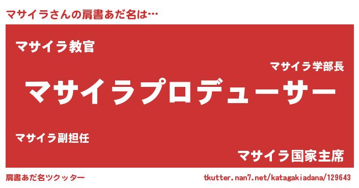 | ヒーロー風カッコイイあだ名 | 『仮面マサダー』『ウルトラマサイラマン』 |
