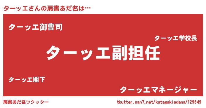 | 女子向けラノベタイトル風あだ名 | 『ターッエの契約王妃』『ターッエ恋絵巻』 |