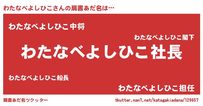 | 男性向けラノベタイトル風あだ名 | 『ワタナベヨシヒコアートオンライン』 |