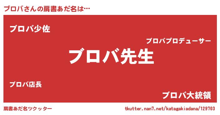 | 意味不明あだ名 | 『永久保存ブロバ』『めかぶ科ブロバ属』 |