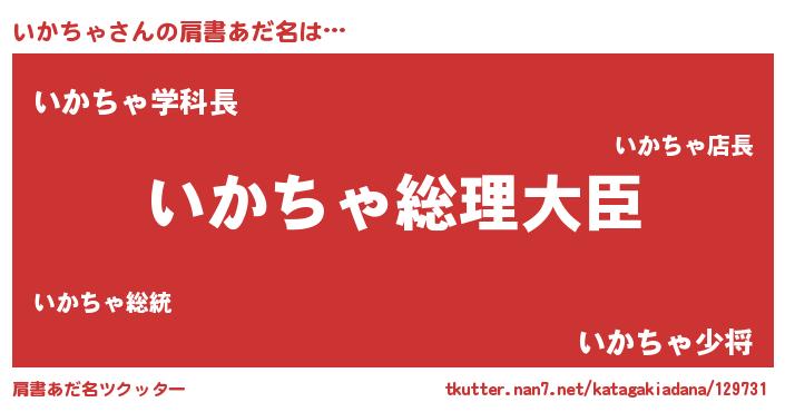 | 女子向けラノベタイトル風あだ名 | 『いかちゃ伯爵の花嫁』『闇のいかちゃ』 |