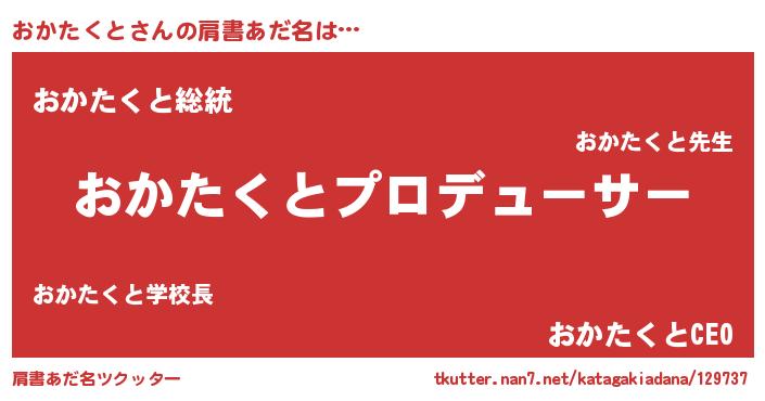 | 意味不明あだ名 | 『自称おかたくと』『ペロリンおかたくと』 |