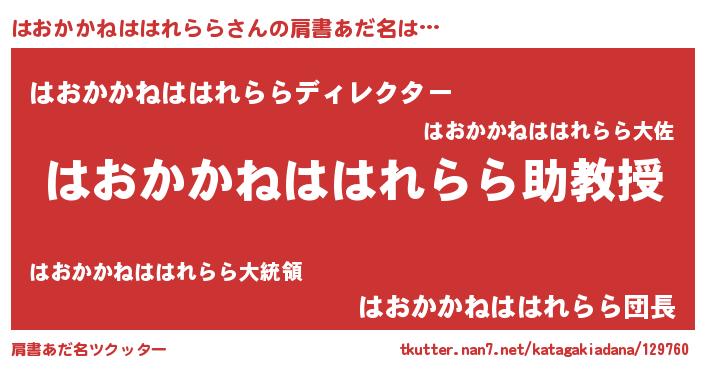 | ヒーロー風カッコイイあだ名 | 『天空の使者はおかかねははれらら』 |
