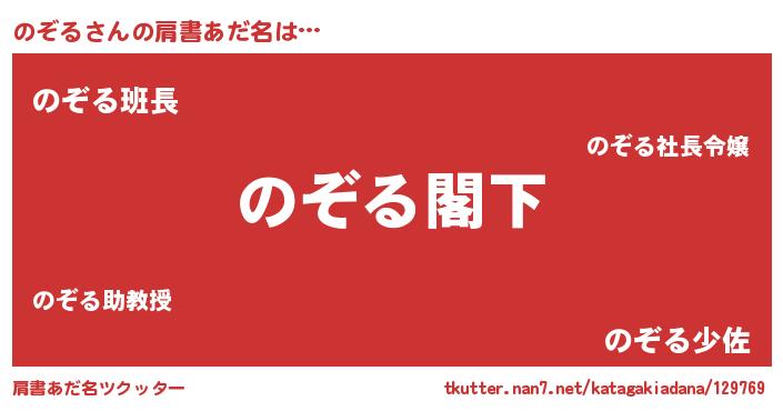 | ピコ太郎風あだ名 | 『ノゾ二郎』『ノコ史郎』『ノノ太郎』 |