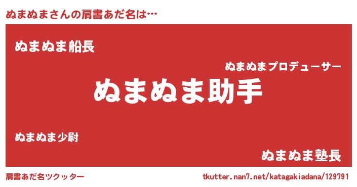 | 女子向けラノベタイトル風あだ名 | 『ぬまぬま恋絵巻』『ぬまぬま様がみてる』 |