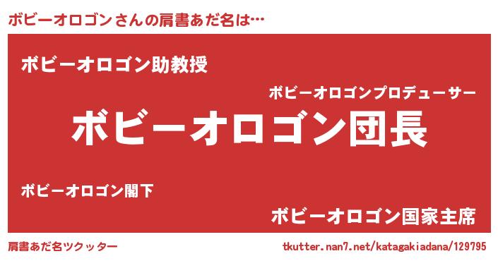 | ポケモン風あだ名 | 『ヒボビーオロゴン』『ボックウザ』 |