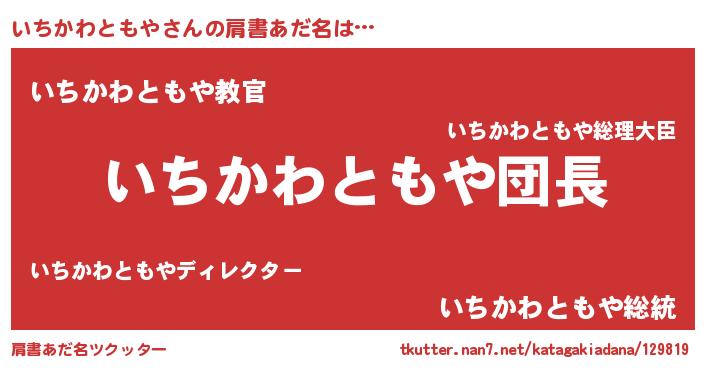 | 女子向けラノベタイトル風あだ名 | 『いちかわともや様がみてる』 |