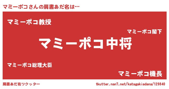 | ヒーロー風カッコイイあだ名 | 『正義の使者マミーポコ』『幻影騎士マミ』 |