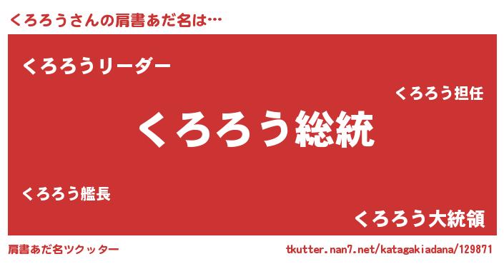 | 意味不明あだ名 | 『自称くろろう』『くろろうフォーエバー』 |