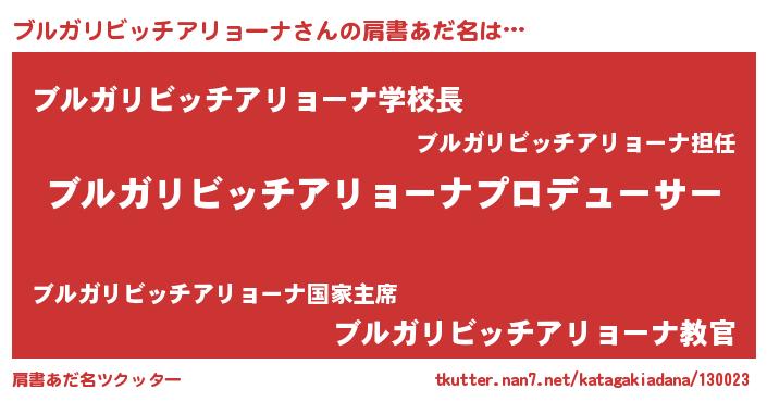 ブルガリビッチアリョーナさんの肩書あだ名をツクッター!