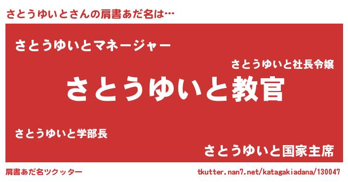 | ヒーロー風カッコイイあだ名 | 『仮面サトダー』『スーパーサトウユイト』 |
