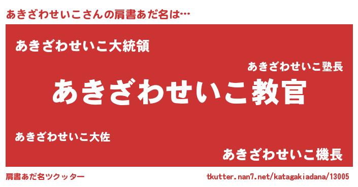 | 意味不明あだ名 | 『住所不定無職あきざわせいこ(53歳)』 |