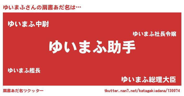 | ヒーロー風カッコイイあだ名 | 『天空の使者ゆいまふ』『ネオユイマフ』 |