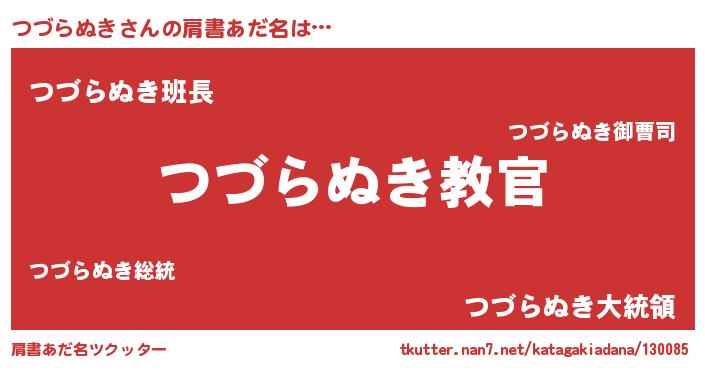 | 男性向けラノベタイトル風あだ名 | 『この素晴らしい世界につづらぬきを!』 |