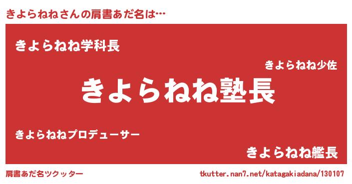 | 女子向けラノベタイトル風あだ名 | 『きよらねねは平凡を望む』 |
