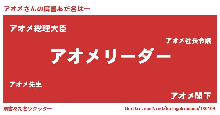 | 欧米人風あだ名 | 『ウサインアオメ』『アオメクリステル』 |