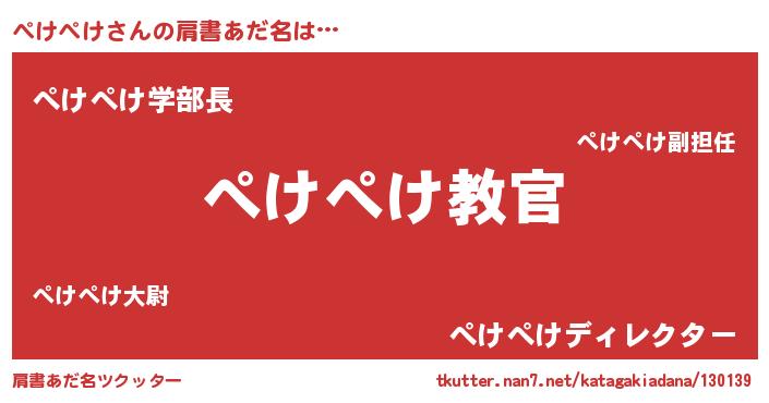 | 男性向けラノベタイトル風あだ名 | 『魔弾の王とぺけぺけ』 |