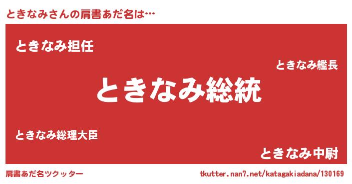 | 意味不明あだ名 | 『自称ときなみ』『永久保存ときなみ』 |
