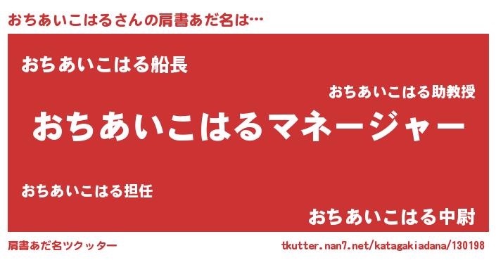 | ヘコむあだ名 | 『おちあいこはる(小並感)』『豆乳』 |