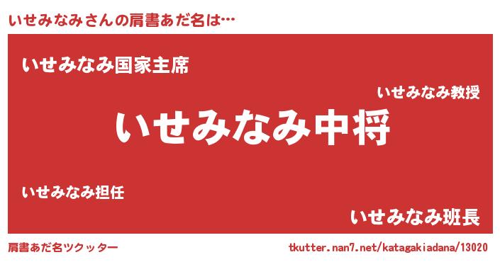 | 男性向けラノベタイトル風あだ名 | 『転生したらいせみなみだった件』 |