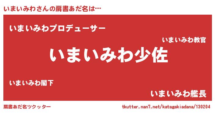 | ヘコむあだ名 | 『いまいみわ(小並感)』『いまぷりん』 |