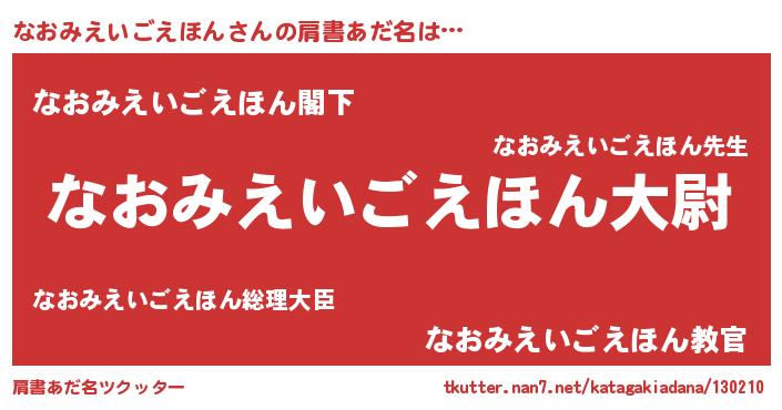 | 伝説のあだ名 | 『古より伝わる暗殺者なおみえいごえほん』 |