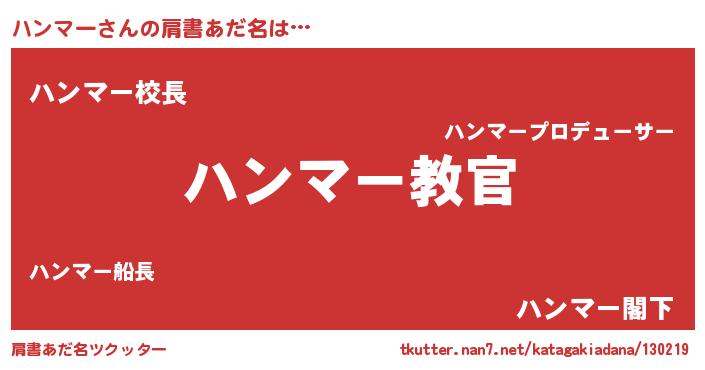 | 欧米人風あだ名 | 『ダレノガレハンマー』 |