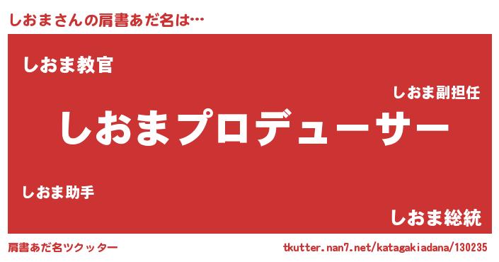 | 男性向けラノベタイトル風あだ名 | 『しおまに滅ぼされるだけの簡単なお仕事です』 |