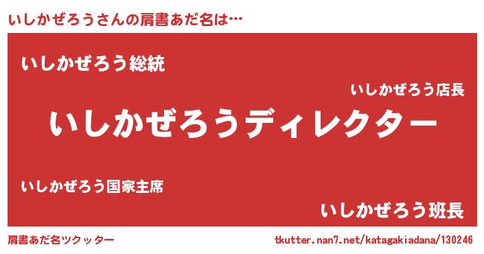 | 男性向けラノベタイトル風あだ名 | 『はたらくいしかぜろうさま!』 |