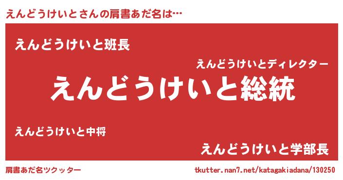 | 意味不明あだ名 | 『自称えんどうけいと』 |