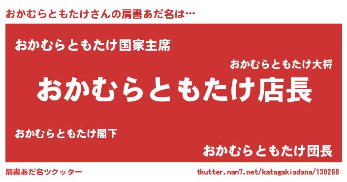| ヒーロー風カッコイイあだ名 | 『スーパーオカムラトモタケ』 |