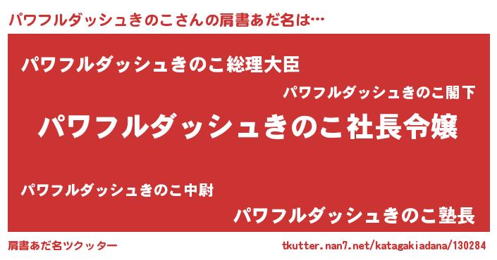 | 男性向けラノベタイトル風あだ名 | 『パワフルダッシュキノコアートオンライン』 |