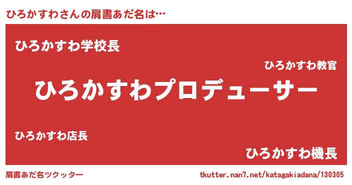 | ヒーロー風カッコイイあだ名 | 『慈愛の使者ひろかすわ』『仮面ヒロダー』 |