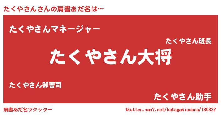 | ヘコむあだ名 | 『たくっちょ』『たくふぇ~』 |