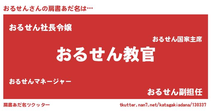 | ヘコむあだ名 | 『おるにゅー』『おるせん(苦笑)』 |