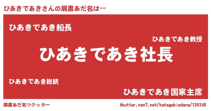 | 男性向けラノベタイトル風あだ名 | 『ひあきであきの憂鬱』 |