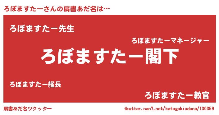 | 男性向けラノベタイトル風あだ名 | 『Re:ろぼますたーから始める異世界生活』 |