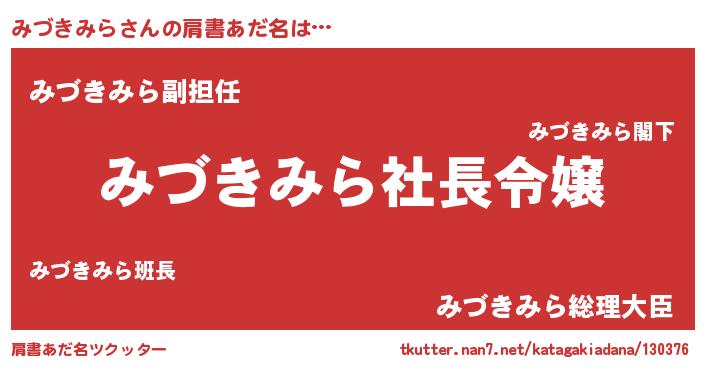 | ヘコむあだ名 | 『みづもー』『みづきみら(遠い目)』 |