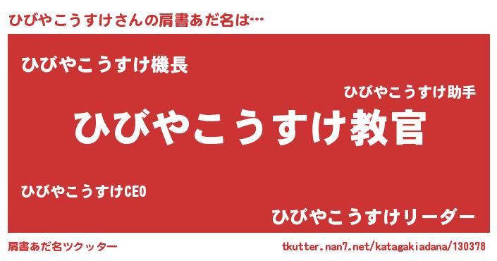 | 男性向けラノベタイトル風あだ名 | 『魔弾の王とひびやこうすけ』 |