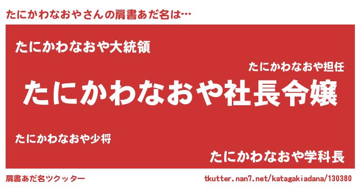 | ヒーロー風カッコイイあだ名 | 『スーパータニカワナオヤ』 |
