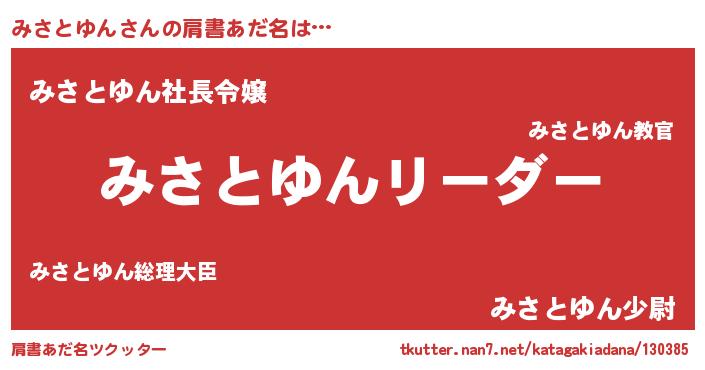 | 男性向けラノベタイトル風あだ名 | 『みさとゆんの嫁は女の子じゃないと思った?』 |