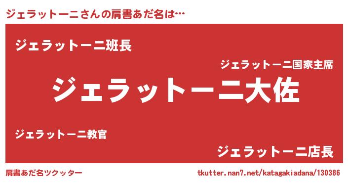 | 男性向けラノベタイトル風あだ名 | 『ジェラットーニスレイヤー』 |