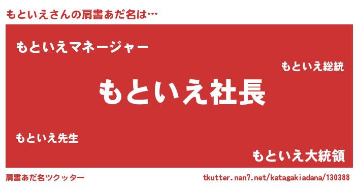 | ヒーロー風カッコイイあだ名 | 『スーパーモトイエ』『究極戦士モトイエ』 |