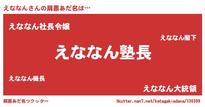 | 欧米人風あだ名 | 『ウサインえななん』『マイケルえななん』 |
