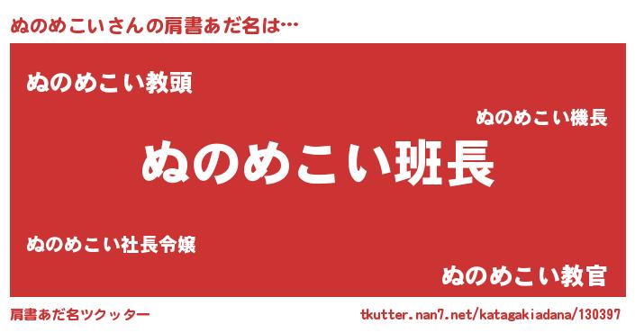 | 男性向けラノベタイトル風あだ名 | 『ぬのめこいの嫁は女の子じゃないと思った?』 |