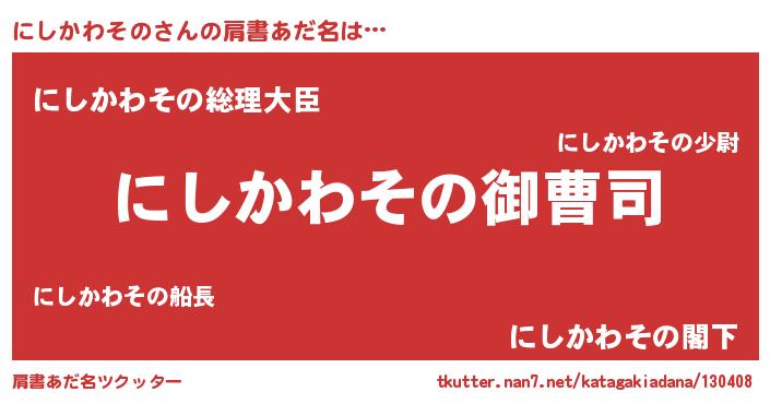 | 男性向けラノベタイトル風あだ名 | 『にしかわそのの憂鬱』 |